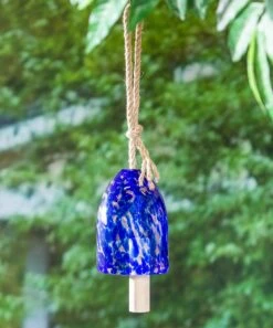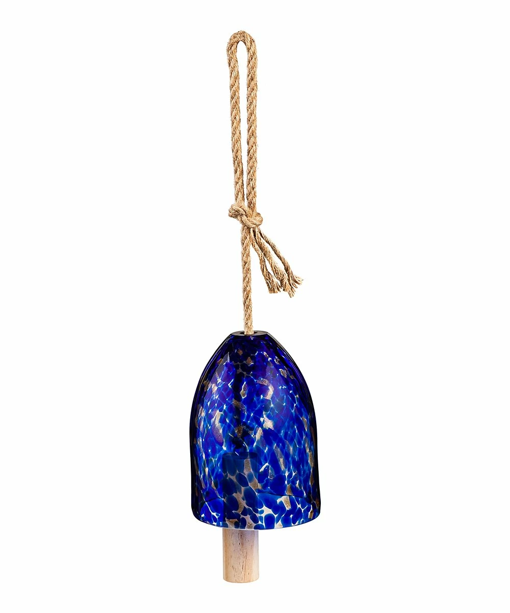 Classic bell-shaped wind chime featuring hand-blown glass with a vibrant, unique color pattern and soothing tones.