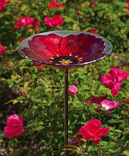 - Includes red pansy birdbath and black garden stake