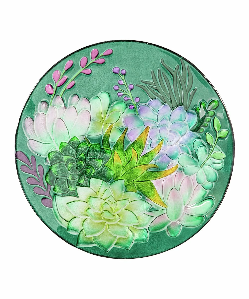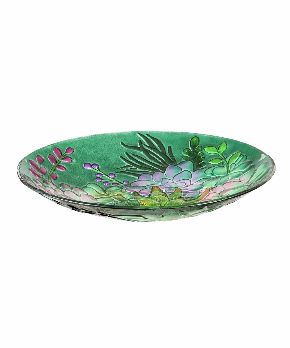 Add some color to your outdoor dΓ©cor courtesy of this bird bath that boasts a vibrant design.