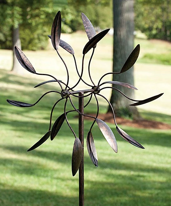 Add boho-inspired charm to your landscape with this garden stake that sports a sturdy iron build embellished with whimsical design and spinning petals.