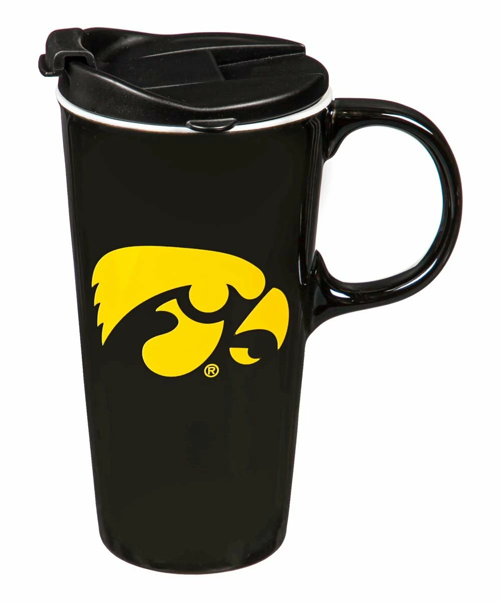 Flaunt your fandom with this ceramic travel mug that features a helpful handle and leak-proof lid.