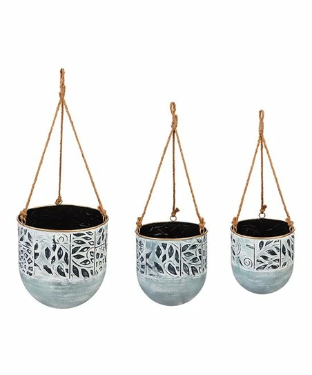 Spruce up your yard with this trio of hanging planters crafted with durable painted metal ready to showcase your plants.