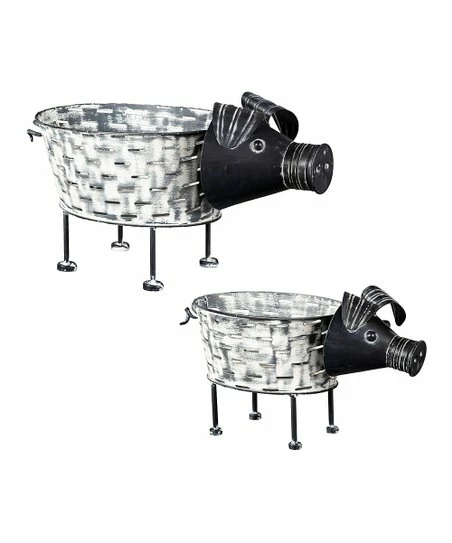 Add a rustic feel to your space with this set ofplanters featuring a distressed metal and playful pig shape.