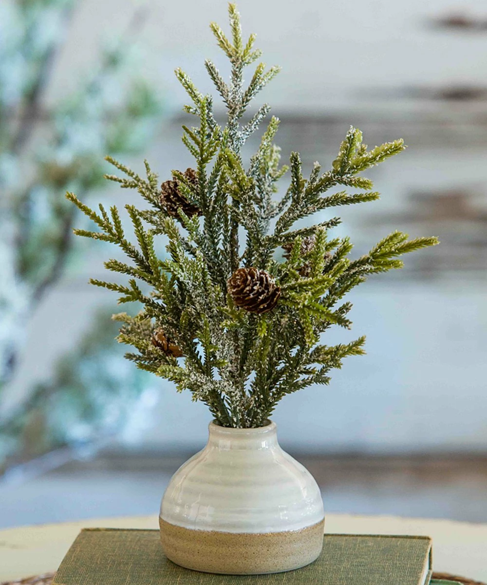 Bring a lush accent to your festive decor with this faux plant decor that features a frosted design.