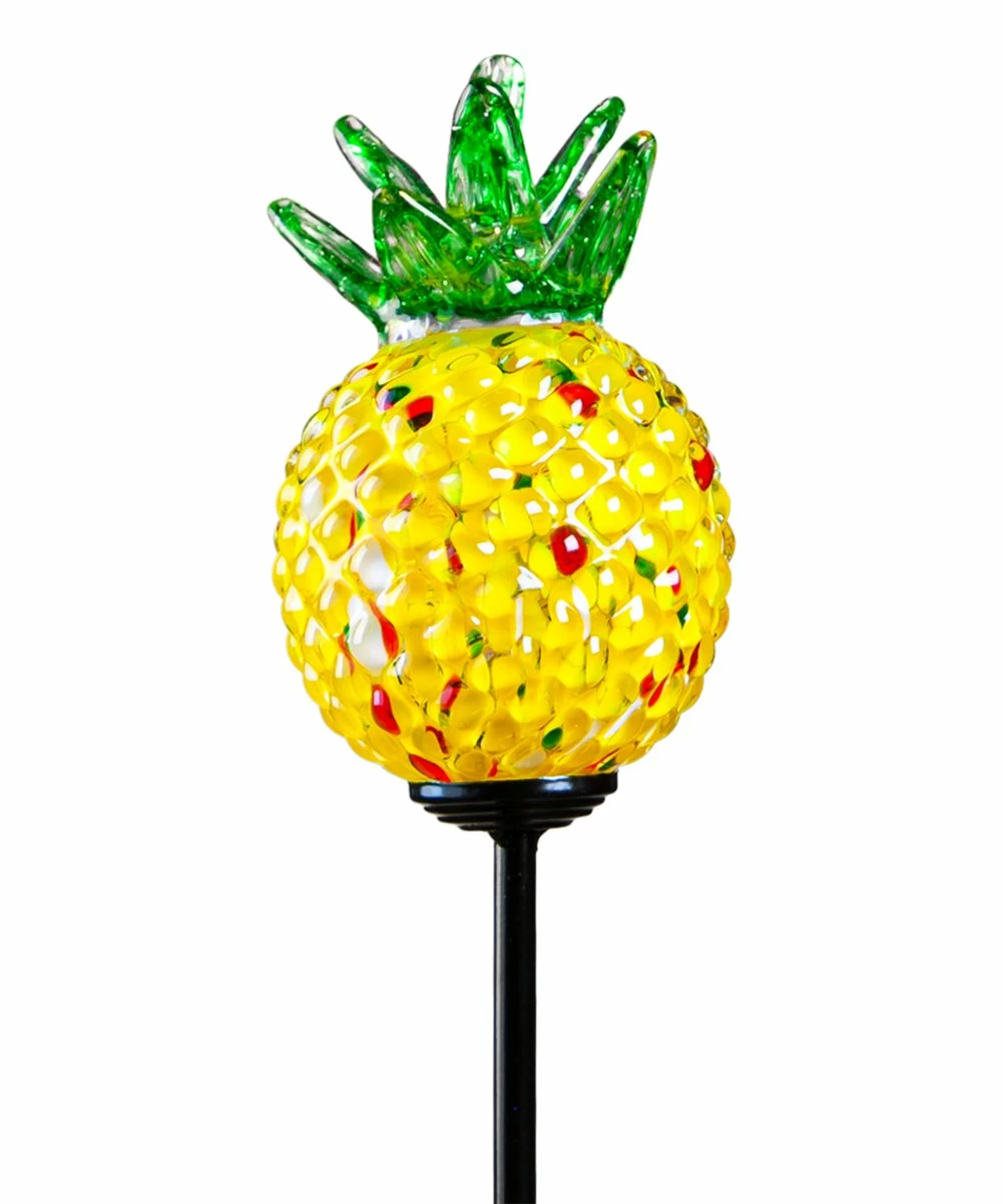 This garden stake has a solar-powered light inside of a quaint, glass pineapple topper.