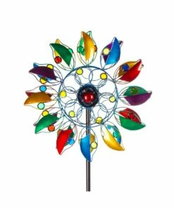 Best Pirce π― Evergreen Blue & Yellow Radiant Jewel Light-Up Solar Pinwheel Garden Stake π