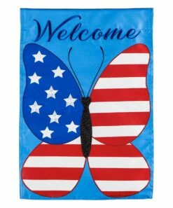 Best deal โ๏ธ Evergreen Blue & Red Patriotic Butterfly ‘Welcome’ Appliquรฉ Outdoor Flag ๐