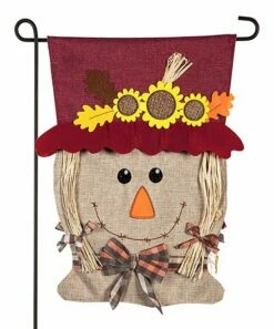 Wholesale π Evergreen Burgundy & Tan Mrs. Scarecrow 18” Burlap Outdoor Flag π