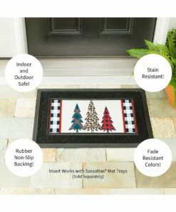 Wholesale 𧨠Evergreen Red & Cream Mixed-Print Holiday Tree Sassafras Doormat Insert π