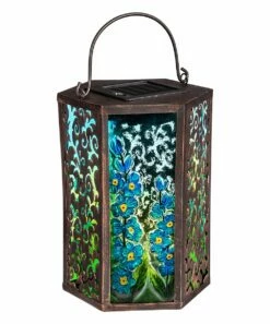 This nostalgic ice skate greenery arrangement features berries and pinecones lit with multicolor LED lights for a festive glow.